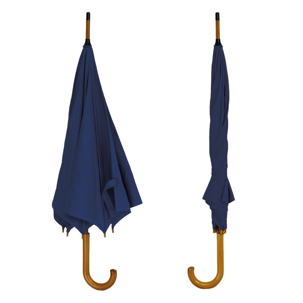 Виріб має купол діаметром 104 см, що забезпечує велику площу захисту від дощу та сонця. Виготовлений з водонепроникної тканини епонж 190Т, що забезпечує високий ступінь водовідштовхування та довговічність. Ручка моделі дерев’яна коричневого окрасу з кнопкою для відкривання, зігнутої форми, зручна для тримання в руці. Діаметр 104 см. Довжина виробу складає – 88 см. Вага – 400г.
